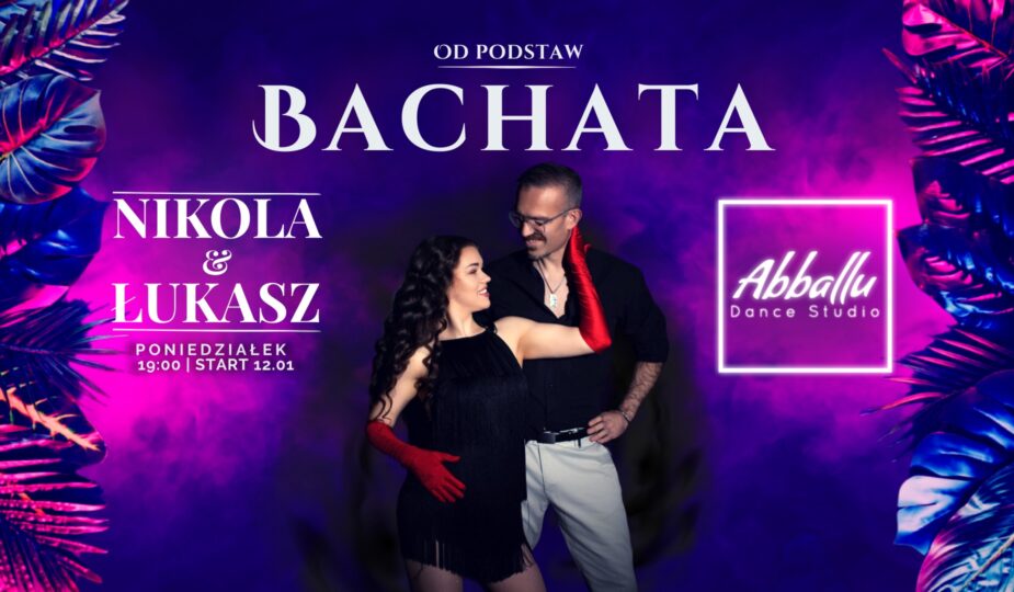 Bachata to zmysłowy i pełen emocji taniec pochodzący z Republiki Dominikany. Łączy w sobie romantyczną muzykę, płynne ruchy ciała i bliski kontakt w parze, dzięki czemu szybko zdobywa serca tancerzy na całym świecie. Charakterystyczne dla bachaty są miękkie kroki, akcenty bioder oraz naturalna komunikacja między partnerami.