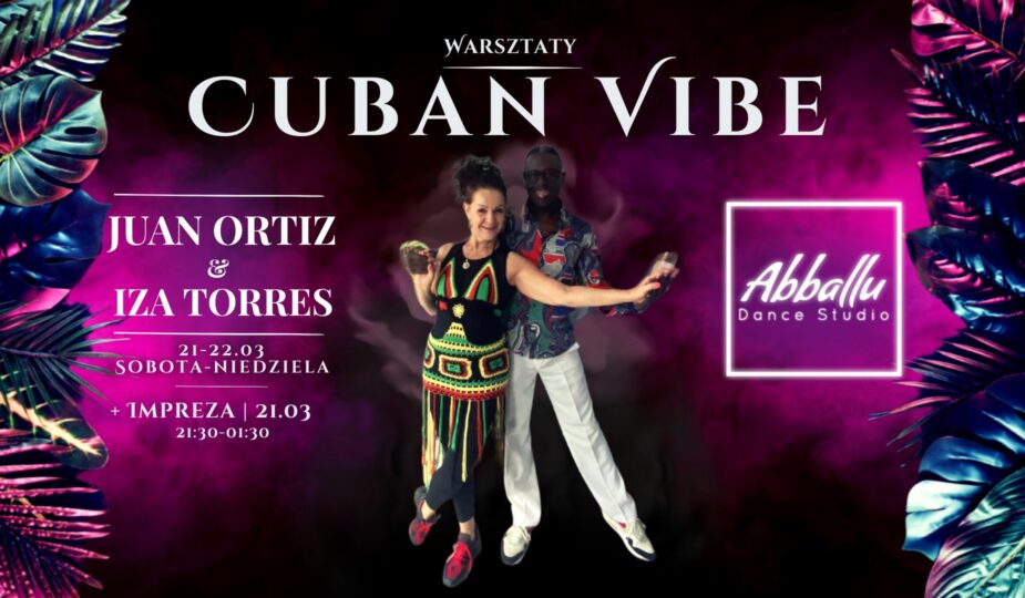 Przygotuj się na taneczną podróż prosto na ulice Hawany! Zapraszamy na intensywne warsztaty Cuban Vibe, które poprowadzi duet totalny: Juan Ortiz – wulkan kubańskiej energii i autentyczności, oraz Iza Torres – ikona polskiej sceny kubańskiej, łącząca wiedzę z niesamowitą elegancją ruchu.